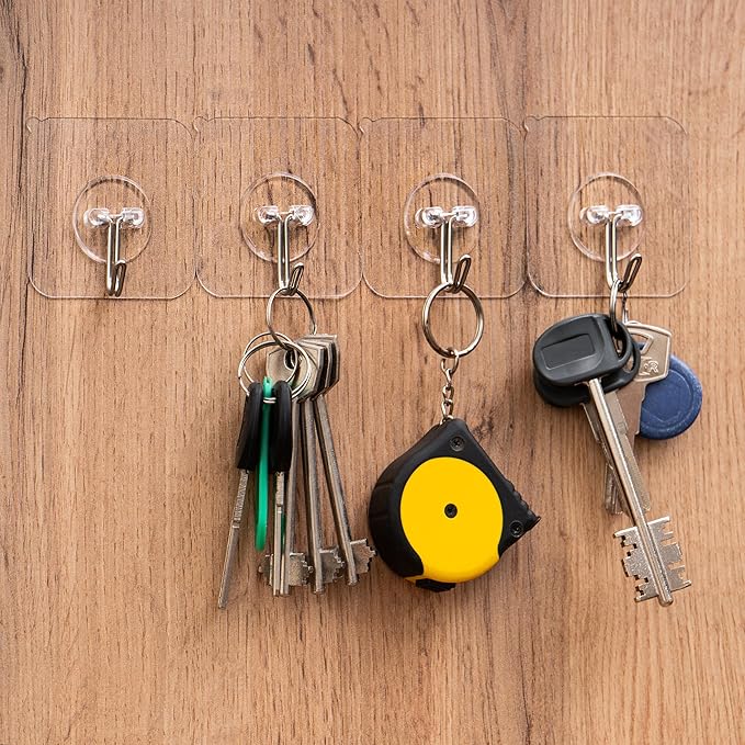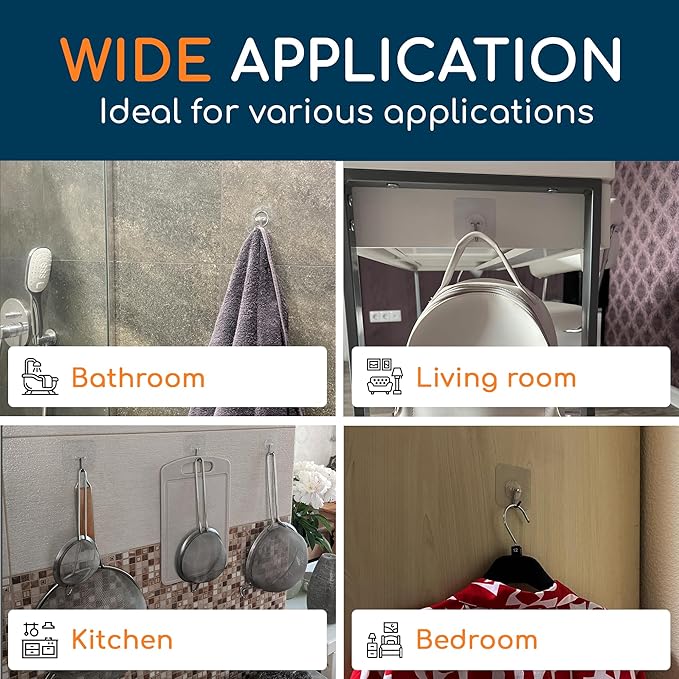 - Easy to use: Apply clear adhesive hooks effortlessly to clean and reposition without damaging surfaces; no nailing or drilling required; reuse after cleaning and drying; keep accessories secure on any surface.