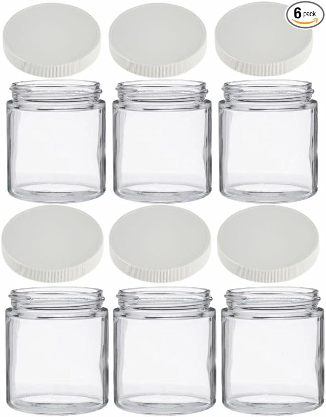 JARMING COLLECTIONS Mason Jars - 16 oz Glass Extra Wide Mouth Pint Storage Jars with White Plastic Lids - Made in USA (6 pack)