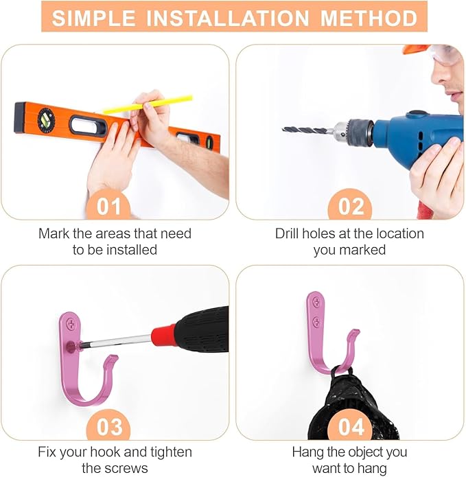 - Quality Upgrade: For the problem of deformation of wall hooks, we have upgraded the material, increased the iron content, so that the quality and hardness of wall hooks and screws are greatly enhanced, it has the function of anti-corrosion and anti-rust, making them strong and durable