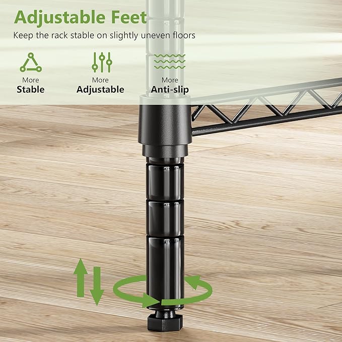 - 【High Load-bearing & Stable Structure】Bathroom Storage Organizer is made of high-quality metal frame, electroplating coating process, bright surface gloss, rust-proof and scratch-resistant, with a load-bearing capacity of up to 630 pounds (285 kg), a single mesh basket with a load-bearing capacity of 65 pounds (29 kg), and a mesh rack with a load-bearing capacity of 250 pounds (113 kg), with excellent stability and durability to meet daily load-bearing needs; it is also equipped with adjustable non-slip feet to ensure excellent stability on any surface