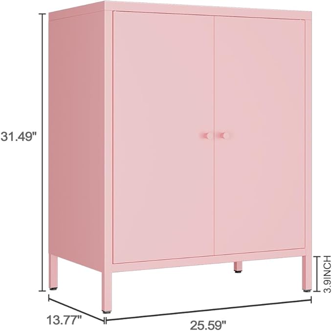 2 Doors Locker Metal Storage Cabinet, Accent Storage Cabinet with Shelves, Freestanding Metal Sideboard for Small Spaces, Living Room, Dining Room, Entryway (2 Door Cabinet, Pink)