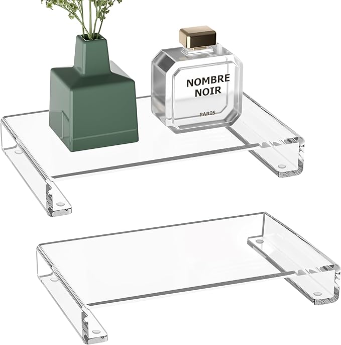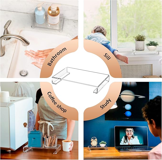 - Wide Application: The acrylic tray pedestal stand can be perfectly used in your bathroom for soap, shower gel, candle, skincare, shampoo. Or you can use the acrylic tray in your kitchen, bedroom, study room, living room for spice jars, small plants, clocks, phone, perfumes, toys, figures. Or you can put some decorative items on this acrylic bathroom counter sink decor Tray. Very good organizer for your house.