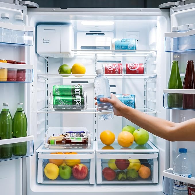 - 【Large Capacity】Maximize space in over-crowded refrigerators, freezers and pantries. It can hold up to 20pcs 11.15oz / 330ML soda short cans or 20pcs 12oz / 355ML soda short cans, 10pcs 12oz - 16oz / 355ML - 473ML soda tall or beer tall cans, 10pcs 16.9oz / 500ML of water bottles, great space saver.