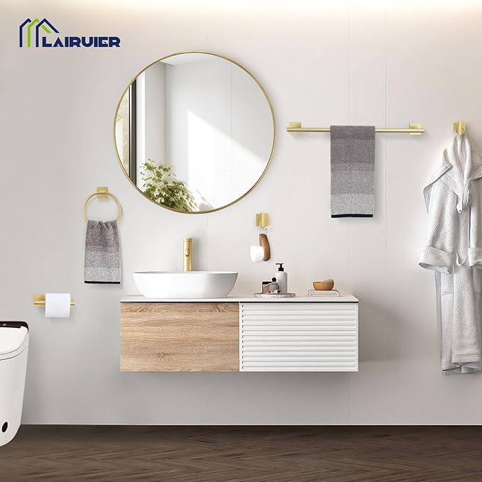 5 Pieces Bathroom Hardware Set Brushed Gold Towel Bar Set Includes 23.6” Towel Bar, Towel Ring Holder, Toilet Paper Holder and Two Towel Hooks, Bathroom Accessories Set SUS304 Wall Mounted