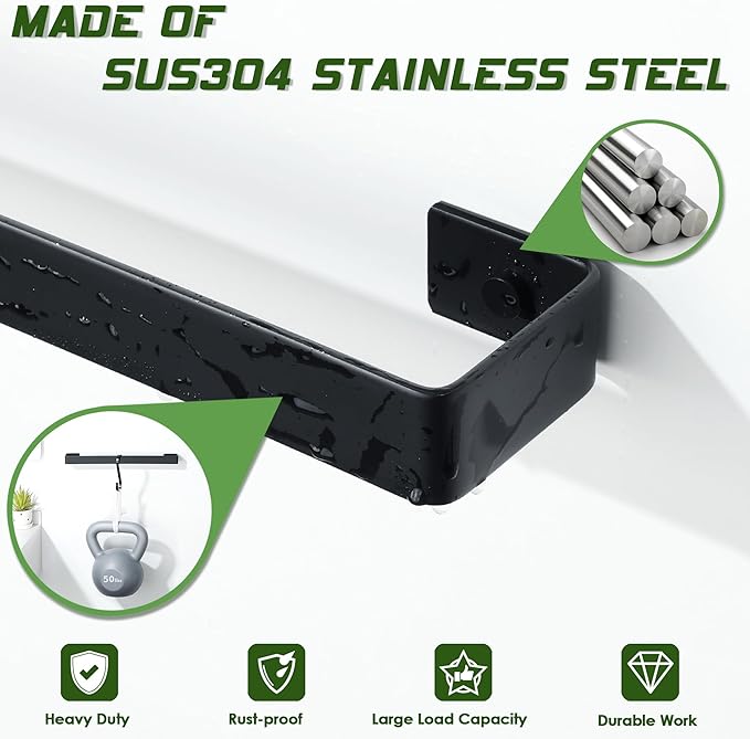 - 【Premium Quality Material】The construction of this black towel bar is top-notch. Made from SUS304 stainless steel, it is incredibly sturdy and durable. Have no doubt that it will withstand the test of time, even in a high-moisture environment like the bathroom.