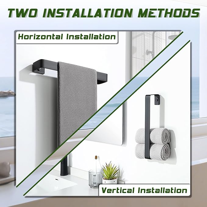 - 【Matte Black Finished】The hand towel holder is finished by ultra high temperature matte black spraying technology , the black surface is smooth and beautiful, adding a touch of elegance and sophistication to my bathroom decor. It complements the other fixtures in the room beautifully and gives the space a modern yet timeless aesthetic.