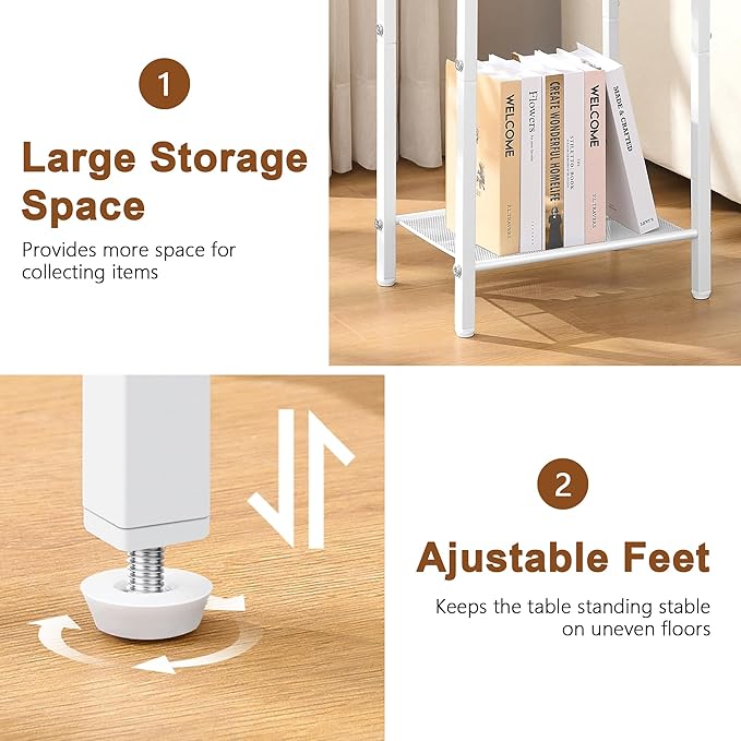 - 【More Practical】The 3-tier storage table can feed all your different needs. The open smooth shelves at the top and middle give you enough storage space for storage and display. The side table have enough space to store your TV remote control and other small things. You can just have a cup of coffee or tea and enjoy a short relaxation.