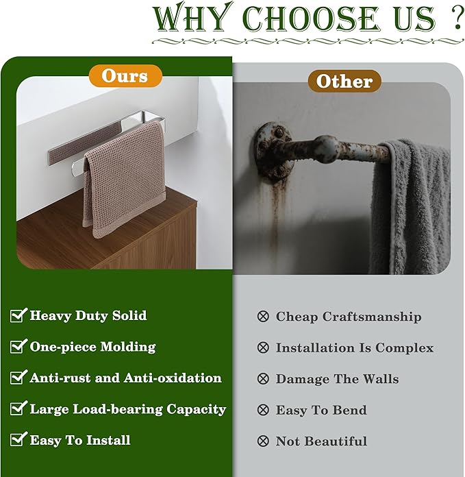 - 【Premium Quality Material】The hand towel holder constructed of SUS304 stainless steel; hi-q steel material features high hardness, corrosion and rust resistance, strong and durable properties ensure long service life.