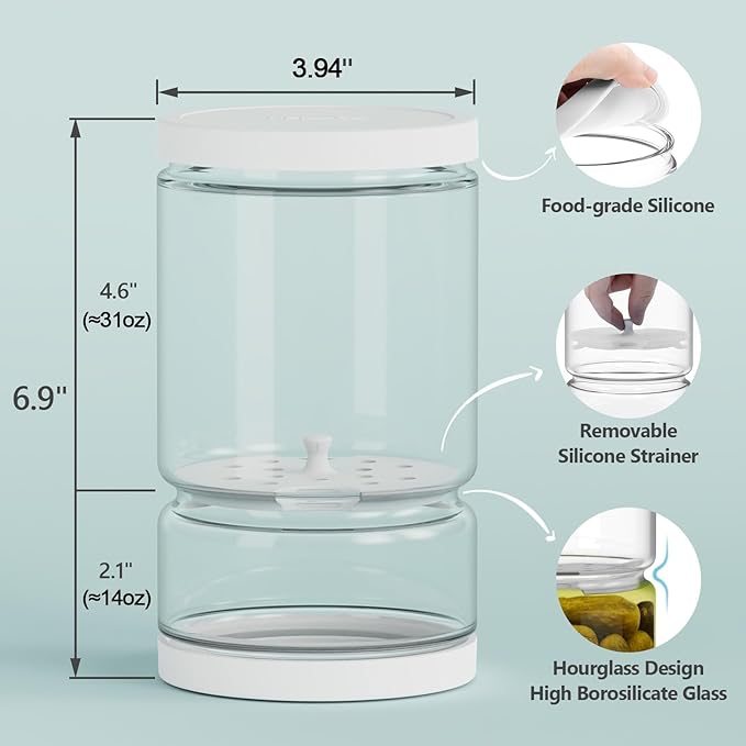 - Effortless Pickle Strainer: Perfect for brining, fermenting, and serving pickles, olives, jalapeños, and cocktail onions. The built-in pickle strainer allows mess-free draining while preserving flavorful brines. Ideal for meal serving and refrigerator organization.