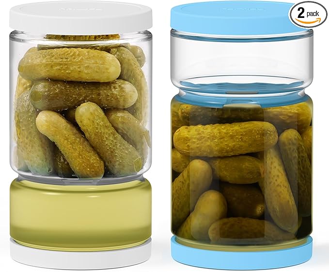 - Effortless Pickle Strainer: Perfect for brining, fermenting, and serving pickles, olives, jalapeños, and cocktail onions. The built-in pickle strainer allows mess-free draining while preserving flavorful brines. Ideal for meal serving and refrigerator organization.
