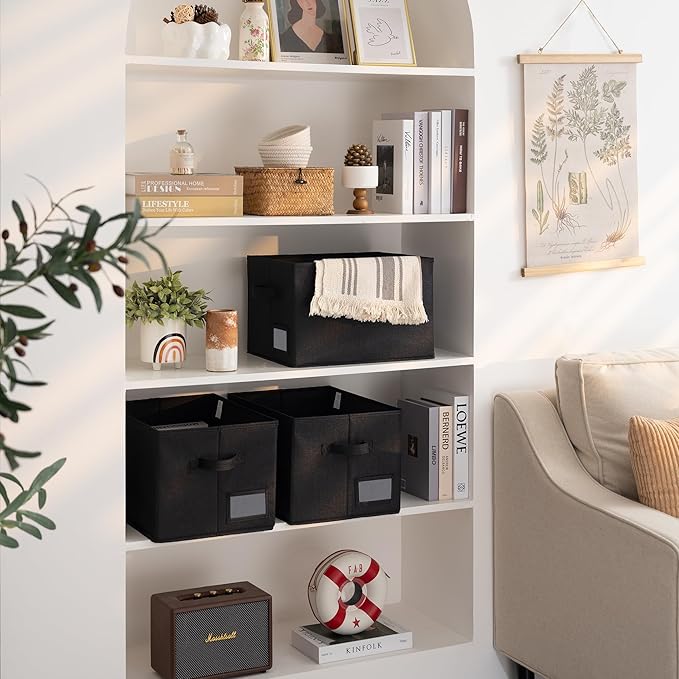 GRANNY SAYS Storage Bins, Storage Baskets for Shelves, Fabric Storage Bin for Clothes, Closet Organization Bin, Collapsible Storage Bins with Handles, Decorative Storage Box, Black, Jumbo, 3-Pack