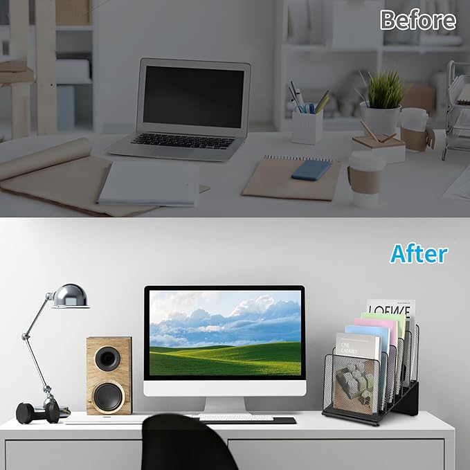 - ✅【Maximize Desktop Space】By employing a vertical storage method, this organizer optimizes your desk space, keeping your workspace consistently neat and orderly.