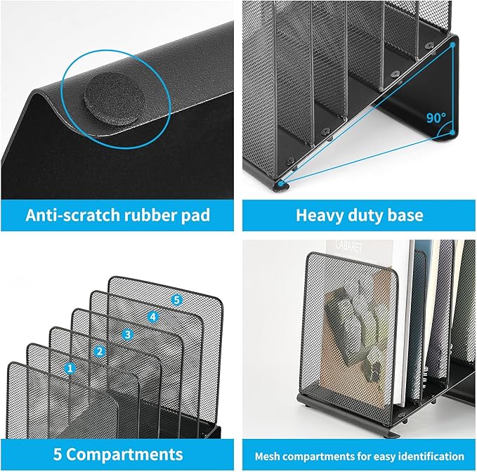 - ✅【Simplified Organization】This office organizer comes with 5 spacious compartments, making it effortless to tidy up your desk by neatly arranging your files and magazines, bidding farewell to cluttered workspaces.