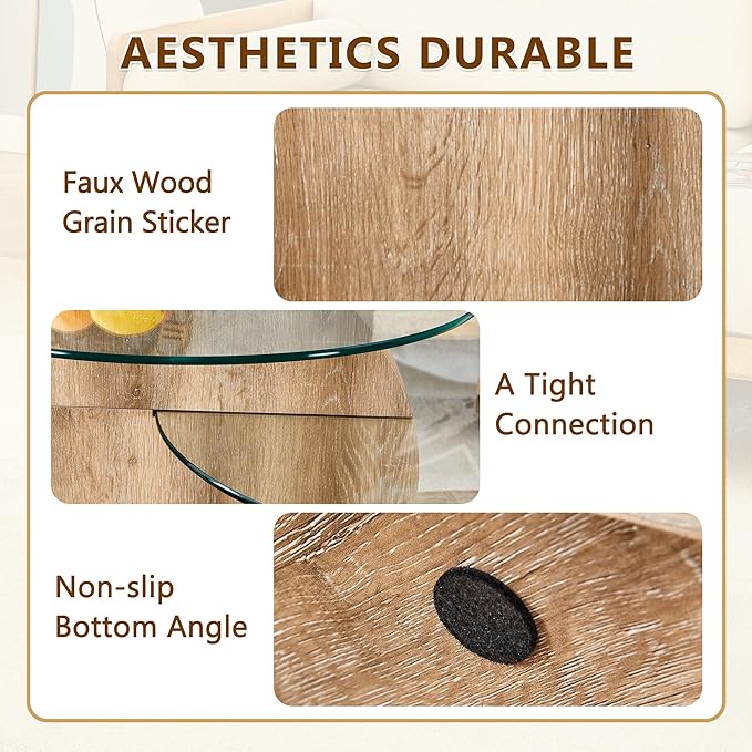 Glass Coffee Tables Round Coffee Tables for Living Room Modern 3 Tier Round Table Circle Coffee Table for Small Space Home Office (42 Inch Light Wood)