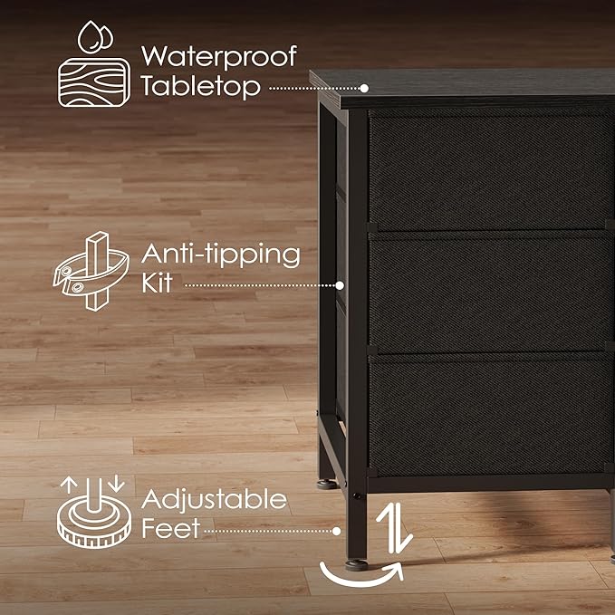 - 【Much Stabler and Safer】Crafted from durable particleboard, a sturdy metal frame and firm fabric drawers, this bedroom dresser stands the test of time. Balanced adjustable feet and an anti-tip device ensure stability, even on uneven floors
