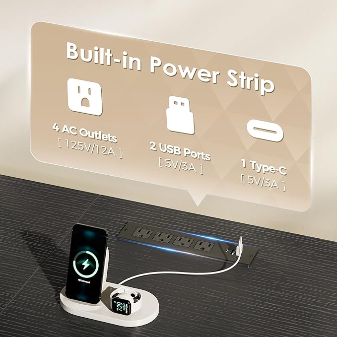- 【Power Outlets & LED Lights】Equipped with 4 AC outlets, 2 USB ports and 1 Type-c port, this TV stand with storage offers convenient charging for your TV, gaming equipment, and other electrical devices. Use LED lights on the fabric dresser to add watching vibes via smart controller or use the app to explore over 60,000 colors, timing mode, mic mode, and music mode. Huuger