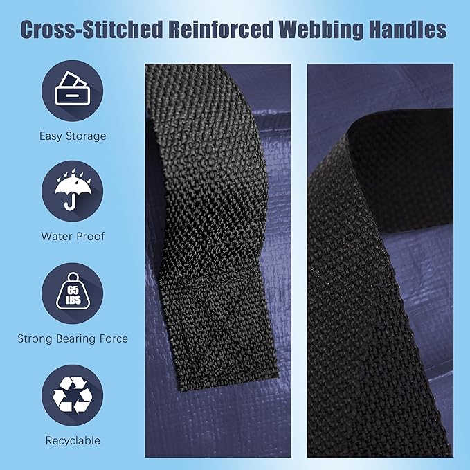 8 Pack Large Strong Moving Bags with Zippers & Carrying Handles - Water-Resistant - Heavy Duty Storage Tote for Space Saving, Fold Flat, Alternative to Moving Box (Blue)