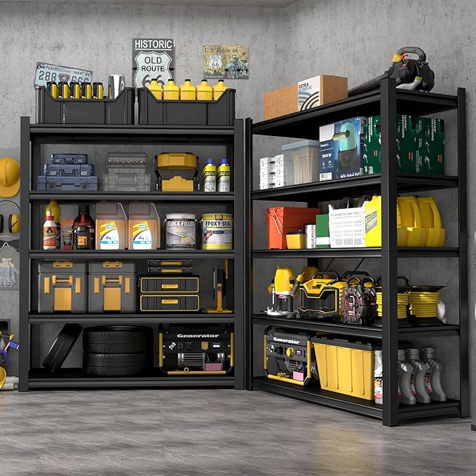 - 【Multipurpose】Metal shelves can be used in garage,basement,kitchen,living room and so on.Garage shelving can provide extra storage space for tires, generators, toolboxes and other types of items.