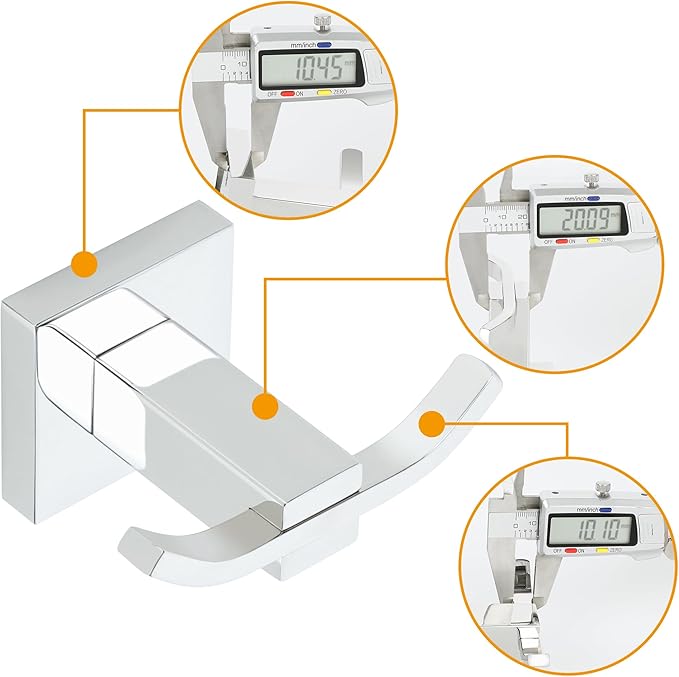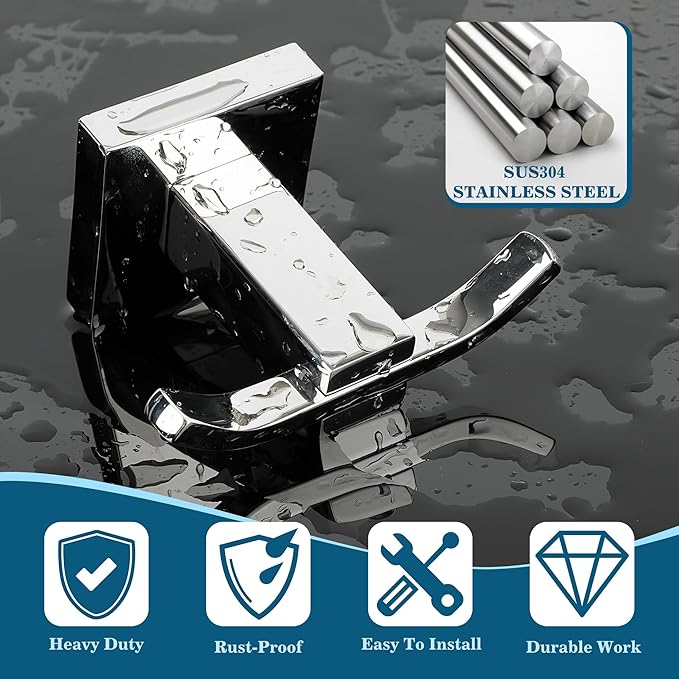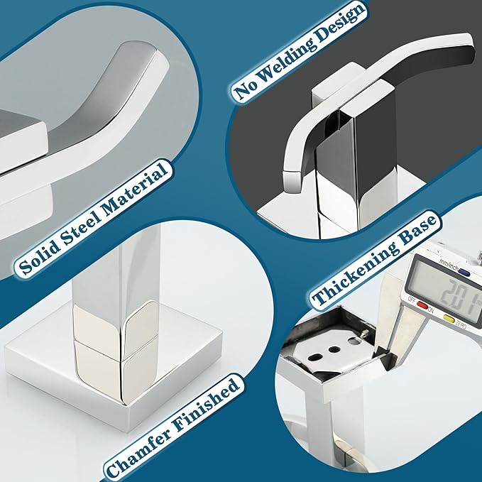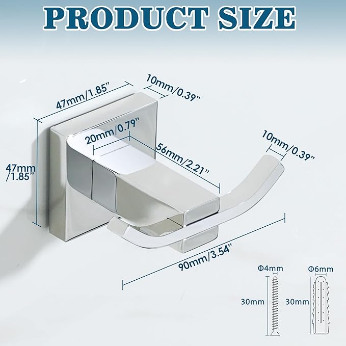 - 【Polished Chrome Finished】 The coat hooks with mooth bright and beautiful surface, transparent like a mirror, able to resist daily corrosion and oxidation, suitable for a variety of bathroom styles, it can instant improve the Luxury level for your bathroom