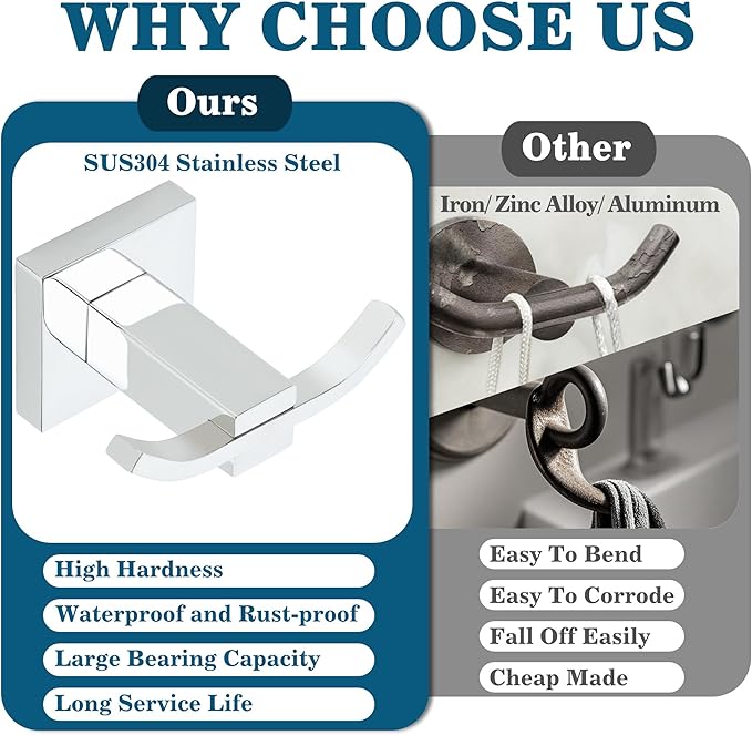 - 【Premium Quality Material】The towel hooks constructed of SUS304 stainless steel; hi-q steel material features high hardness, corrosion and rust resistance, strong and durable properties ensure long service life.