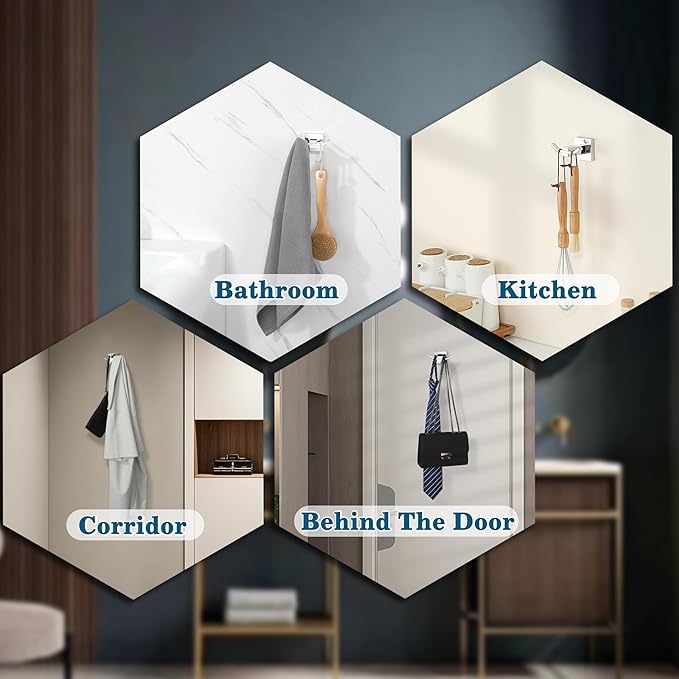 - 【Elegant and Practical】Stylish and beautiful double coat hooks design complete, practical and modern, convenient for store and stable. Applicable to all kinds of bathroom, toilet, kitchen, over the door, garage, hotel, cabinet, bedroom, balcony, cloakroom, laundry room etc.