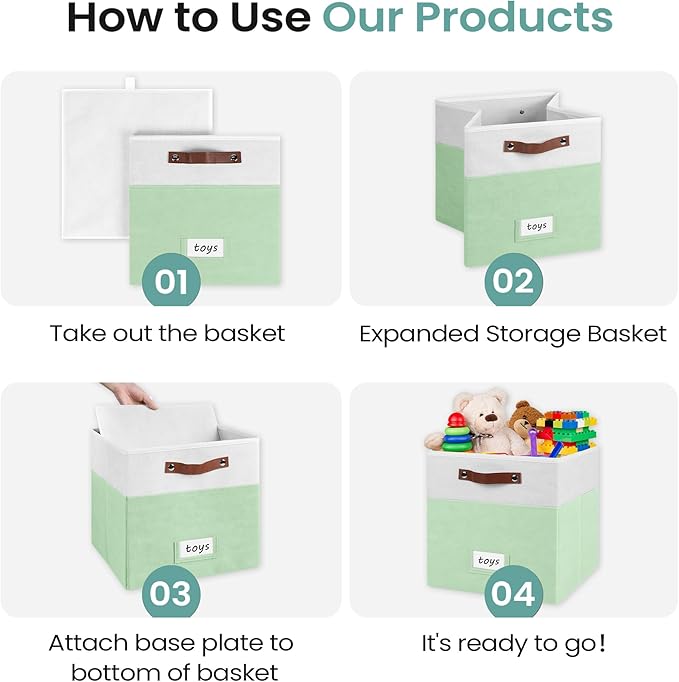 - 【Sturdy & Durable Construction】Crafted from high-quality non-woven fabric and reinforced with thick cardboard, our storage cubes ensure durability and stability. Each bin can hold up to 11 lbs, providing firm support for your belongings. The two side PU handles are not only stylish but also practical, making it easy to carry and reposition the bins as needed