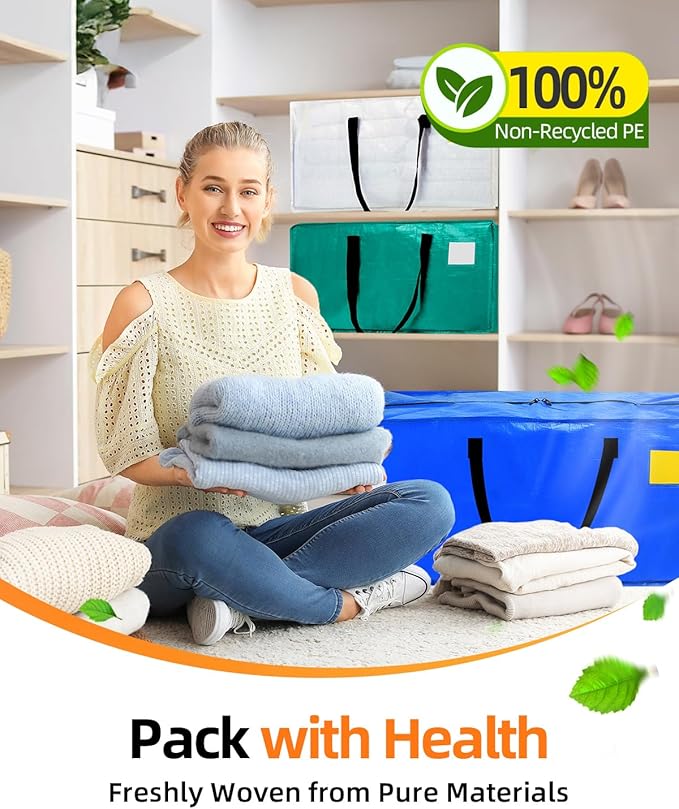- 【Pure Materials】 Our moving bags use new PE material—zero harmful chemicals, no plastic smell, and fully recyclable. A safer, greener choice for organized movers who value durability and environmental responsibility.