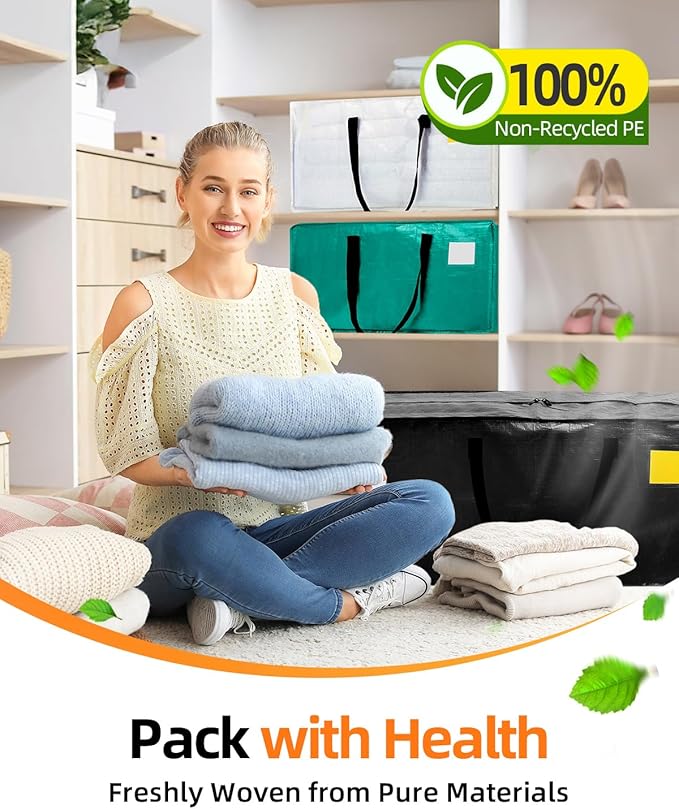 - 【Pure Materials】 Our moving bags use new PE material—zero harmful chemicals, no plastic smell, and fully recyclable. A safer, greener choice for organized movers who value durability and environmental responsibility.