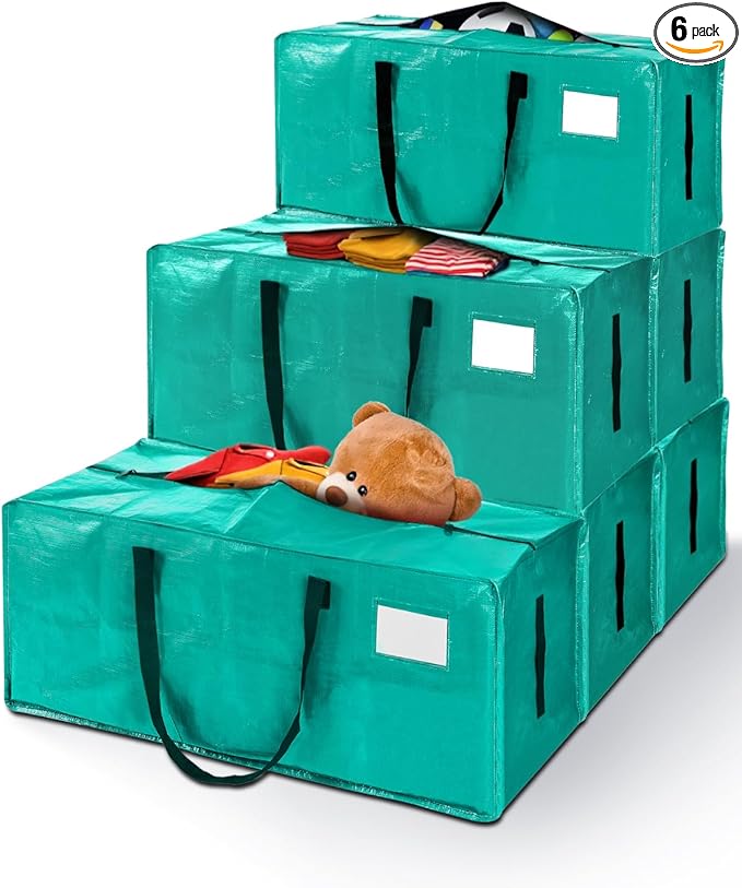 6 Pack Extra Large Moving Bags, Heavy Duty Packing Bags with Zippers and Handles for Space Saving, Clothes Storage, College Essentials, Travel, Tiff-Blue