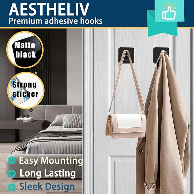 - NO DAMAGE AND HEAVY-DUTY: Best Adhesive hooks for walls no damage and easily install on smooth, clean surfaces without drilling or leaving holes in your home or apartment, perfect for renters or anyone who wants to avoid wall damage, perfect Sticky hooks for home storage and organisation solution