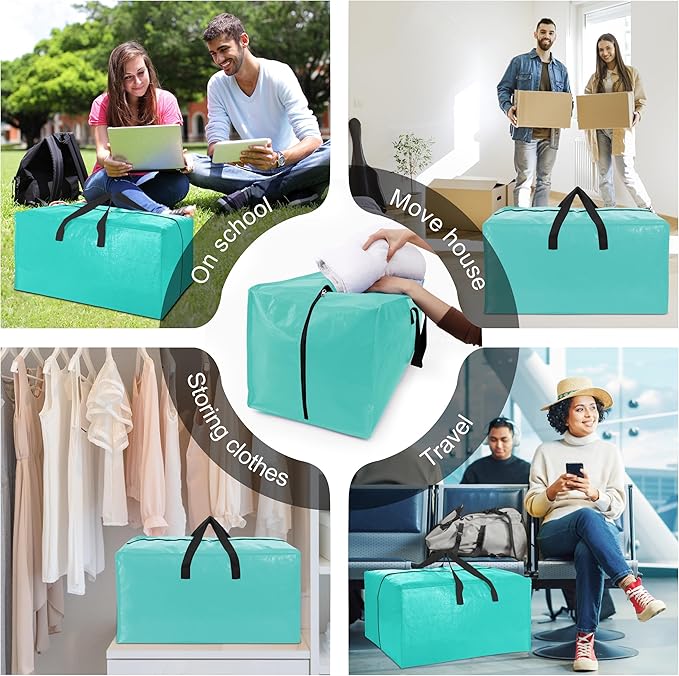 6 Pack Heavy Duty Extra Large Moving Bags W/Backpack Straps - Strong Handles & Zippers, Storage Totes For Space Saving, Fold Flat, Alternative to Box and Bin (40 gal, Aquamarine)