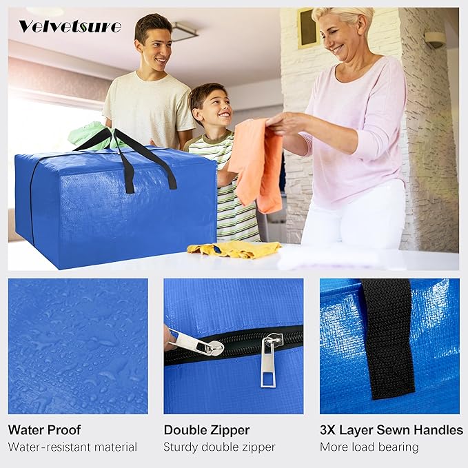 - EASY TO USE GREAT FOR MOVING: VELVETSURE Extra Large Moving Bags plenty of room to store and protect just about anything. These bags are very mobile and are a lightweight, economical alternative to moving boxes. College students love these bags in and out of college dorms.