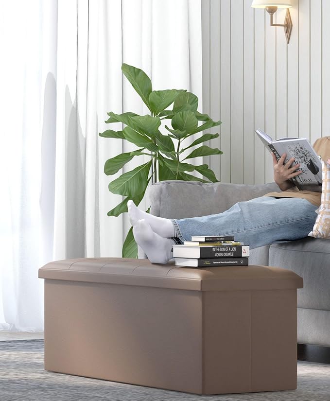 Folding Storage Ottoman Bench, Multi-Functional Ottoman Footrest, End of Bed Bench, Storage Chest for Living Room, Bedroom, Hallway, Entryway, Holds Up to 700 lbs (Brown, 43 Inches)