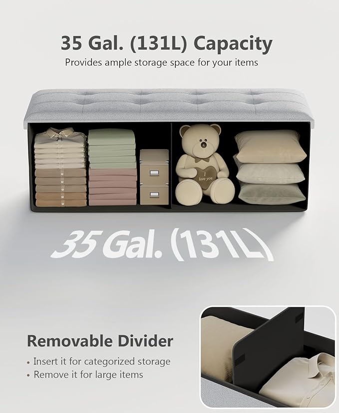 - [Comfortable Seating] Filled with high-density foam and covered in linen-look fabric, this storage bench provides a soft, supportive, and breathable seat for optimal comfort