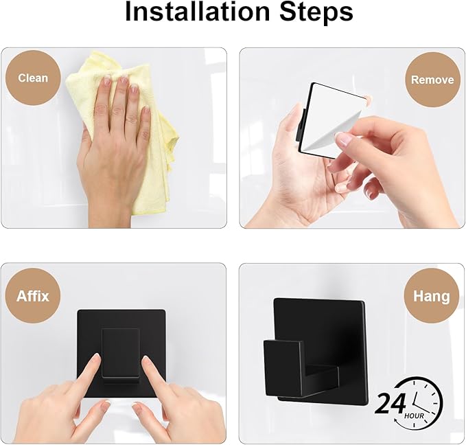 - [No Tools, No Hassle] Installation is a breeze—no drilling or tools needed! Just peel off the adhesive film, stick to smooth surfaces like tile, glass, or metal, and wait 24 hours for a secure hold. Easy, quick, and damage-free.
