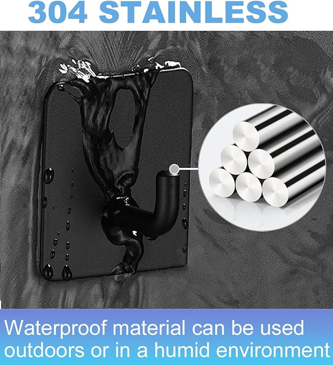 20 Pcs Towel Hooks with Removable Strips for Hanging, Adhesive Wall Heavy Duty, Outdoor No Damage, Sticky Hook for Bathrooms, Shower, Stockings, Decor, Robe, Small, Black 304 Stainless Steel