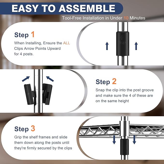 - 【Durable & Sturdy Construction】Made from high-quality steel and featuring a unique triangular mechanical design, this anti-rust wire shelving unit is tighter, stronger, and more durable than traditional racks, ensuring long-lasting performance.