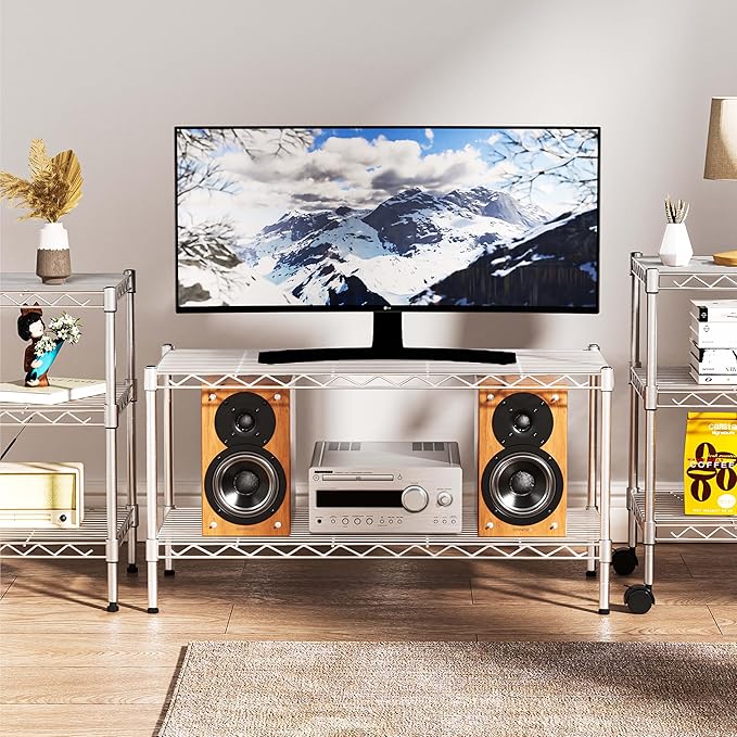 2-Tier Heavy Duty Shelving Unit,36" Wx18 Dx19.5H,Wire Shelf Rack with Lockable Wheels,Height Adjustable Metal Storage Shelves Organizer for Living Room,Garage,Kitchen,Office,Laundry,Pantry