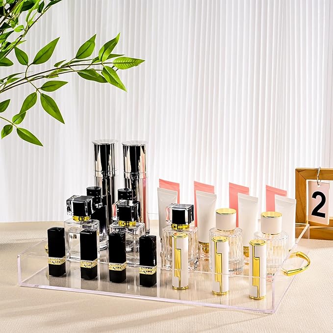 - Dual Spacious Sizes: Our acrylic trays with handles measure 16"x12"x2" and 15.2"x11.2"x1.9", two versatile sizes to meet a variety of needs and maximize convenience while keeping essentials organized, stylish, and easily accessible on tables, counters, or ottomans
