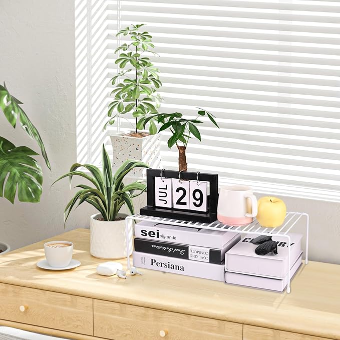 - Simplify storage with this space-saving wire shelf organizer. Designed for cabinets, countertops, or cupboards, it helps optimize vertical space while keeping items within reach.