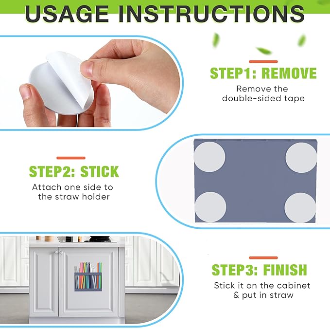 - Complete Package for Easy Installation: the package includes 1 acrylic straw holder and 4 pieces of double sided adhesive tapes (straw not include); The tapes provide a secure and stable setup, ensuring the straw holder stay securely even in busy areas; The outer layer of the product has a plastic film and auxiliary tape; The plastic film needs to be torn off before use; The tape is applied to assist in fixing the product and can also be torn off without affecting the stability of the product