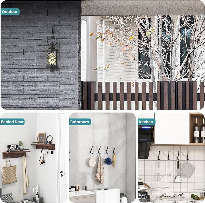 - 【Durable Enough for Heavy-Duty Use】Aerospace-grade aluminum resists scratches, humidity, and UV damage. Hang wet coats, muddy leashes, or loaded bookbag hangers – hooks stay sturdy and sleek.