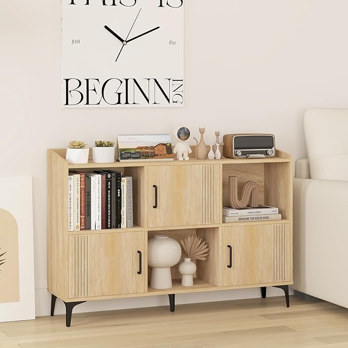 - [Versatile Storage Options]: Featuring a wide top with raised edge, this storage cabinet provides secure storage space for books, dinnerware, or ornaments. The enclosed doors keep clutter out of sight, while 3 open compartments allow you to display favorite treasures stylishly.