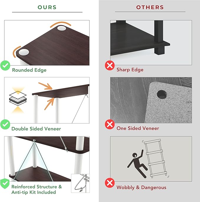 - ๐ HASSLE-FREE ASSEMBLY: Comes with detailed instructions for quick setup. Easily connect the shelves, twist tubes, and secure the legs for a sturdy build. Backed by a one-year warranty for peace of mind. โ ๏ธ WARNING: Do not climb or stand on this product.