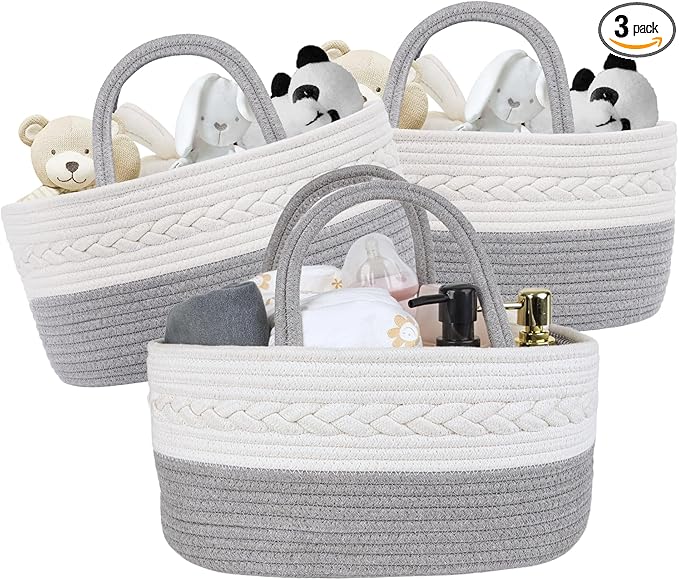 - Large Rope Diaper Caddy Organizer This rope diaper caddy organizer is perfect for storing baby essentials. A large diaper caddy baby organizer with durable handles, it’s a must-have for any baby girl baskets for baby shower.