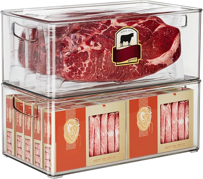 Hudgan 2 Pack Deep Freezer Organizer Bins, Straight Side Stackable Chest Freezer Storage Bins, Pantry organizers and Storage, Food-Grade Plastic
