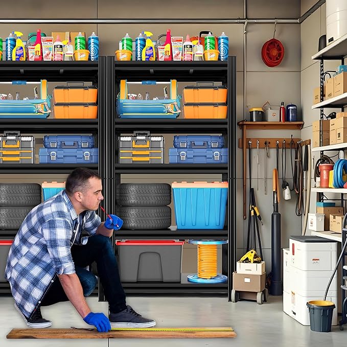 - 【Adjustable Metal Shelves】Adjustable metal shelves offer flexible storage options with customizable shelf heights. Each shelf can be adjusted up or down to accommodate items of various sizes. It can also be divided into two storage shelves and used as a workbench. It is ideal for garages, storage rooms, closets, kitchens, warehouses, basements, stores, sheds, living rooms, offices and more.