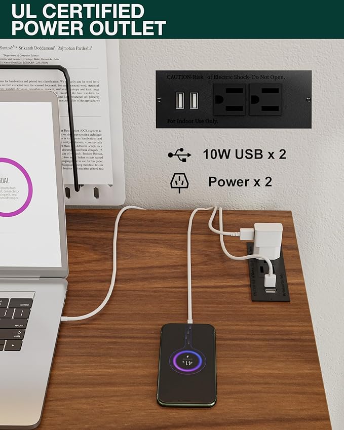 - πππ‘π§πππ₯ππ§ππ π£π’πͺππ₯ ππ¨π β ππππ₯ππ ππ©ππ₯π¬π§πππ‘π ππ§ π’π‘ππ β Stay powered and productive with 2 built-in AC outlets and 2 USB portsβperfect for laptops, phones, tablets, and more. No more messy extension cords or reaching for distant plugs; this smart design keeps all your devices charged and your workspace neat