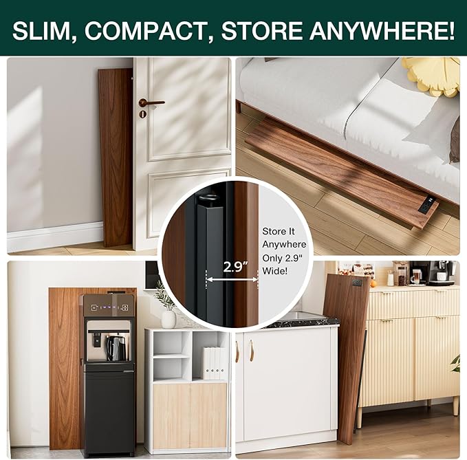 - ππ¨ππ§π₯π-π¦πππ , π¦π£πππ-π¦ππ©ππ‘π π¦π§π’π₯πππ β When folded, the desk is just 2.9" thickβeasily stored behind doors, under beds, or in closets. Lightweight and portable, itβs perfect for compact living areas or anyone needing a foldable table thatβs easy to move