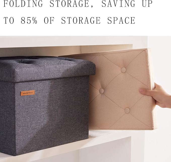 - Elegant & Chic Appearance: graceful lines, classical color and traditional-style tufts create a unique fascination, making this folding storage ottoman an real eye-catcher no matter where it is placed. It’s suitable for bedroom, living room, entryway, dinning room, etc.
